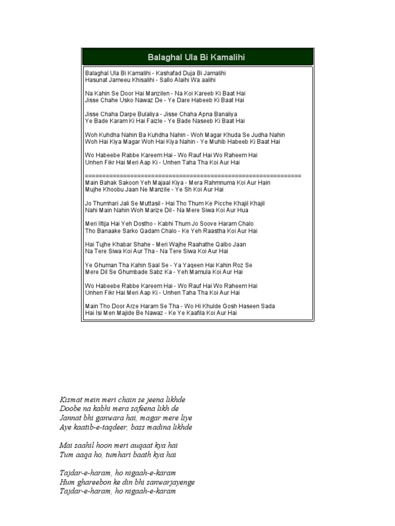Balagal Ula Bi Kamalihi Lyrics : Tayray zikr ki he yay barkatayn mayray bigray kam.