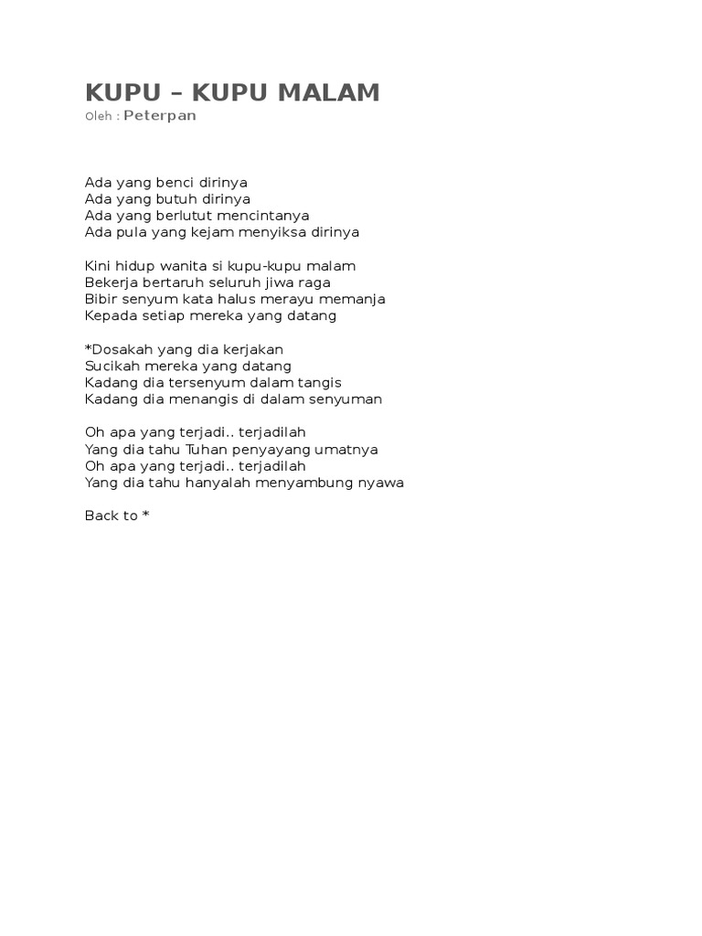 Kupu Kupu Malam Lirik / Anda mengetahui judul dan nama penyanyi.