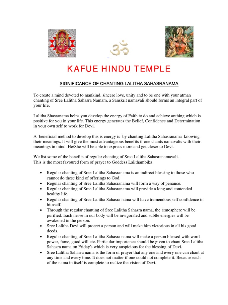 Lalitha Sahasranamam Lyrics In Sanskrit / The divine mother or goddess durga, in the.