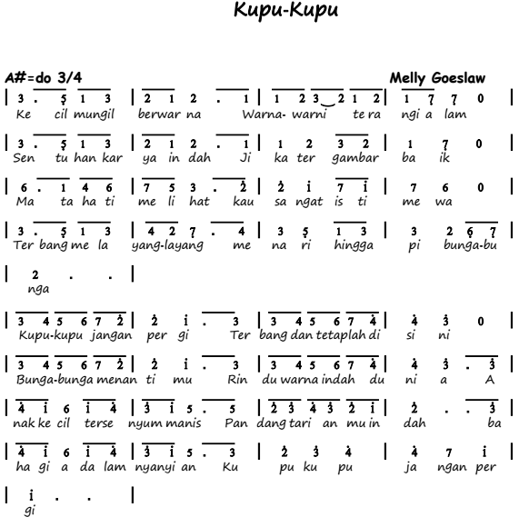Lirik Lagu Kupu Kupu Yang Lucu Beserta Not : Download lagu, lirik lagu, dan video klip terbaru.