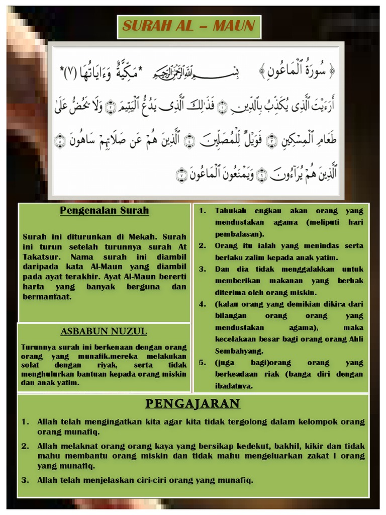 Surah Al Maun Dan Maksud / Panjang ayatnya hanya 7 ayat saja serta termasuk surah pendek yang masuk kategori juz.